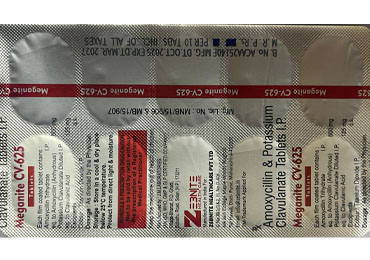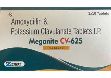 Meganite CV-625 is a combination antibiotic containing Amoxycillin and Potassium Clavulanate, used to treat a wide range of bacterial infections. Amoxycillin works by killing bacteria responsible for the infection, while Clavulanate enhances its effectiveness by preventing bacterial resistance. This medicine is commonly prescribed for infections of the respiratory tract, ear, throat, lungs, urinary tract, skin, and dental infections.